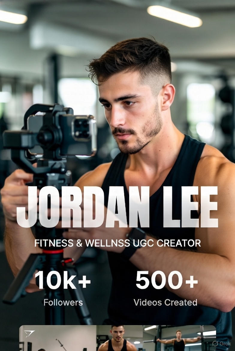 Hi, I'm Jordan - a certified personal trainer and UGC creator passionate about making fitness fun and accessible. I specialize in authentic, relatable content: workout demos, transformation stories, supplement reviews, and wellness tips that convert viewers into customers